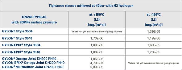 As a general rule, third-generation GYLON® PTFE seals have been used in the H2 (hydrogen) range for decades and their technical tightness is beyond question, since the current testing of the common EN 13555 sealing characteristics was carried out with the much smaller molecule helium.