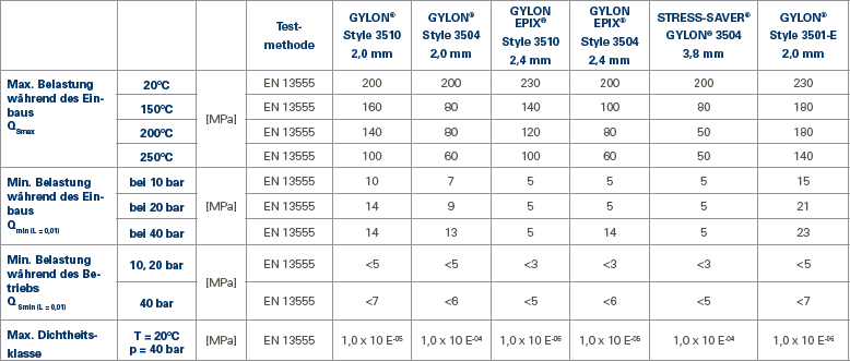 Die GYLON® & GYLON EPIX® Dichtungstypen wurden wie folgt eingelagert:
