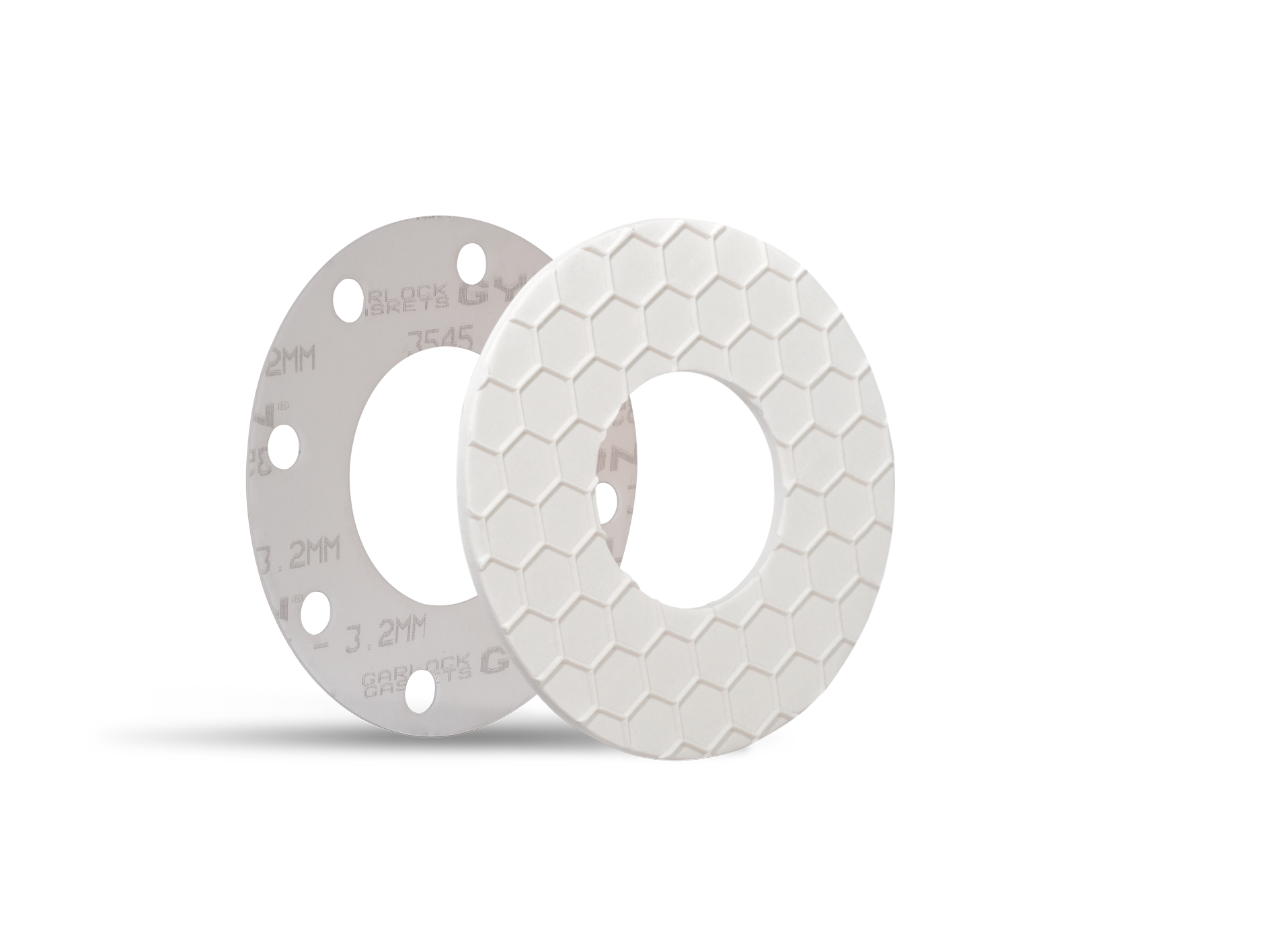 » En sus aplicaciones más abrasivas, considere la posibilidad de cambiar a GYLON® 3545, un PTFE microcelular altamente compresible con un núcleo de PTFE rígido para mejorar la manejabilidad. |
