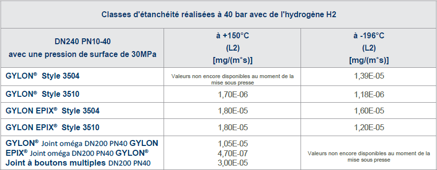 Il a pu être prouvé que les essais d’étanchéité sous le fluide H2 hydrogène aboutissent toujours à un dépassement de la classe d’étanchéité requise de 1,0x10E- 02 [mg/ (s*m)] dans des conditions cryogéniques ainsi que dans des conditions gazeuses.