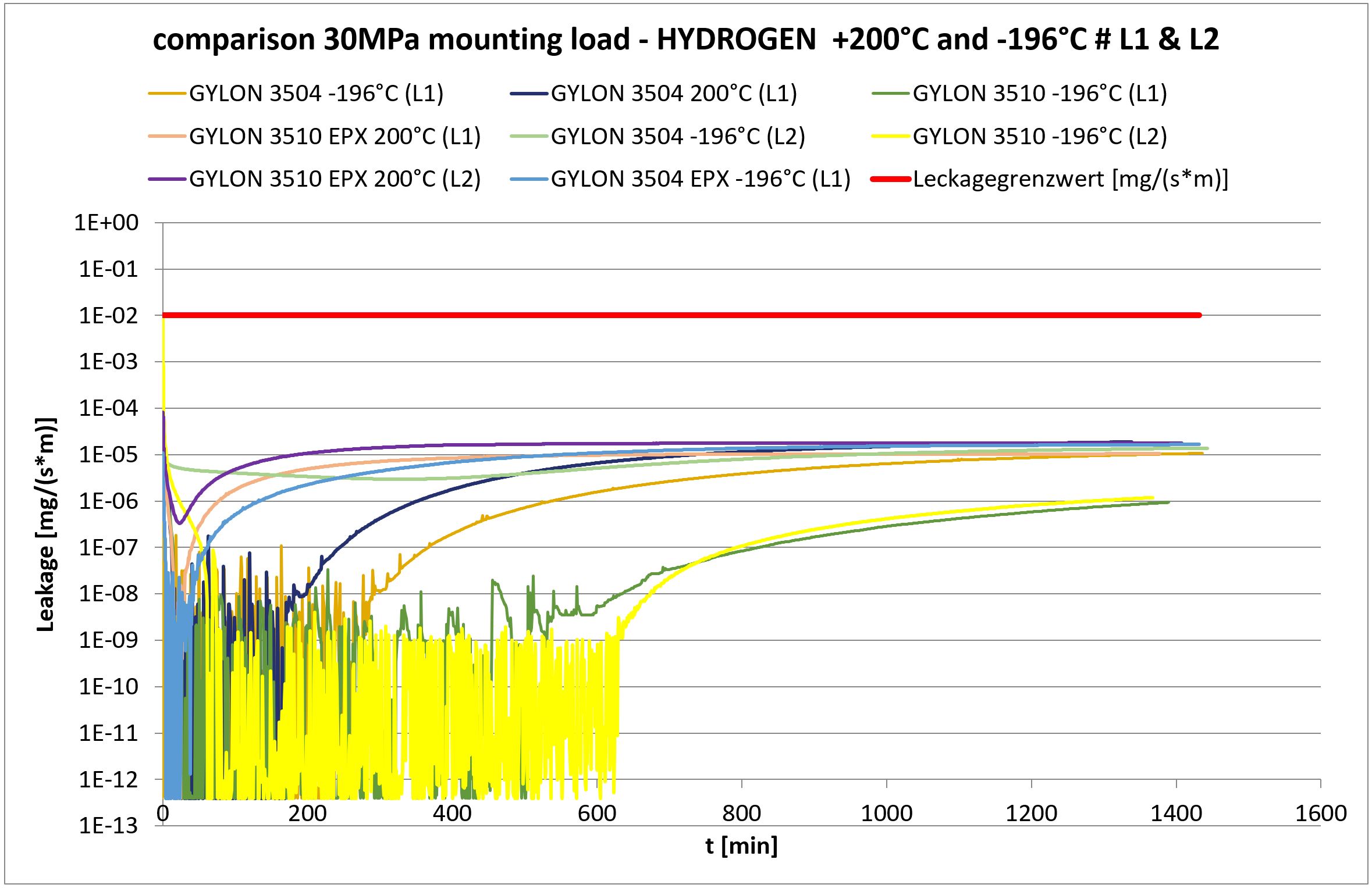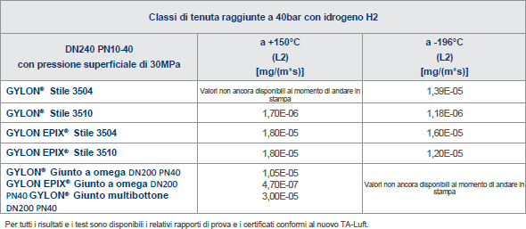 Poiché il mezzo H2 rientra sempre nel campo di applicazione di TA-Luft, è necessario utilizzare materiali per guarnizioni in grado di fornire la prova matematica della tenuta tecnica in conformità alla VDI2290 mediante il calcolo in conformità alla EN 1591-1 per le connessioni a flangia circolare. Ciò significa che è necessario determinare le caratteristiche EN13555 dei materiali di guarnizione per quanto riguarda lo scorrimento in temperatura o la pressione superficiale massima tollerabile.