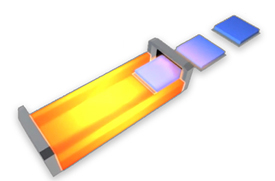 The PTFE skiving is a common cutting process. Plates are cut from material with knives. With GYLON® this is combined with the sintering process. The GYLON® plates, which are already homogeneously formed during the compression process, slide out of the sintering device and thus retain their homogeneous and consistent structure.