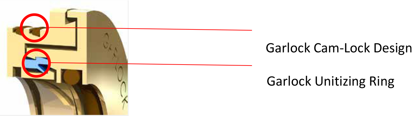 The Garlock Cam-Lock design provides superior retention force compared to standard bearing isolators. This Garlock design allows for easy installation by hand without the need for an arbor press or other tools.